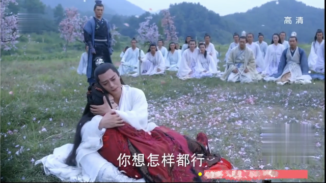 没想到白子画真的拿悯生剑刺穿了花千骨的身体,随后抱着她缓缓下降,坐在草地上