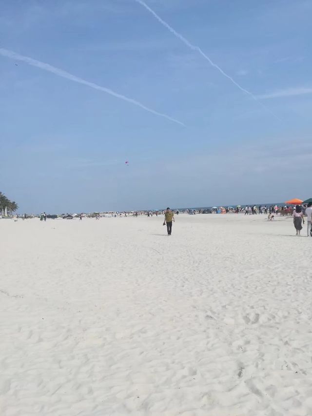 他们去的是北海,早就听说那里有一个银滩,沙子很白很细,海滩很浅很安全。今天终于可以一睹它的风采了!