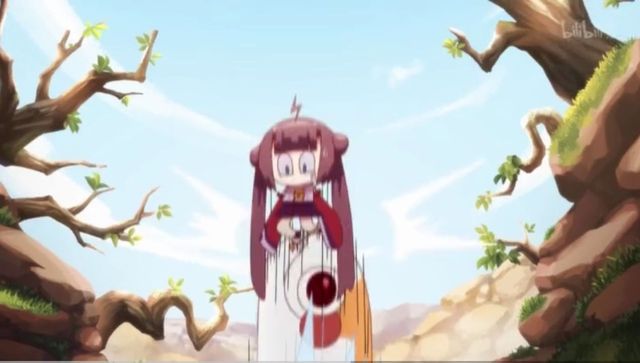 弓线拉得很长,通过元神施加的力,咻——!嗖——!旗鱼以子弹的速度飞过去,把茗鱼射穿了。