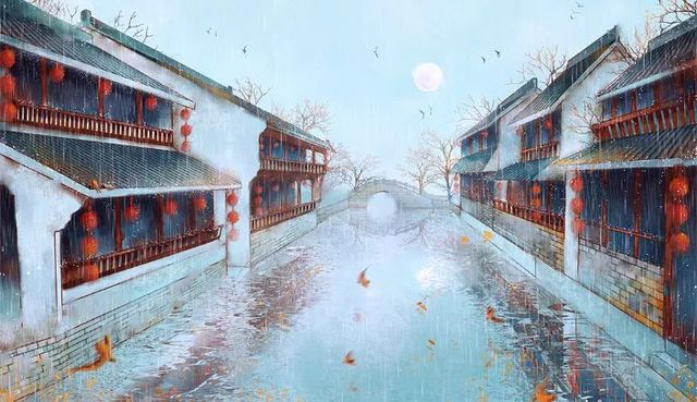 是江南水乡啊,白墙黑瓦,江河穿插,飞鸟贴着水面滑翔,翅尖掠起点点水花。