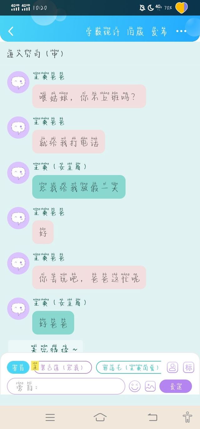 王爽(女主角)噢对了我明天上班,所以你还是别来了