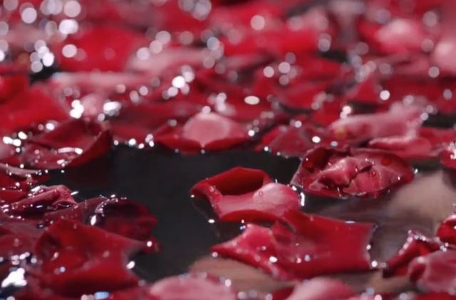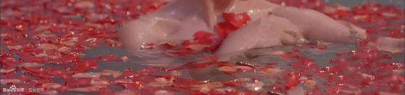在氤氲的水汽和花瓣之中,时而低头含笑,时而撩水嬉戏。