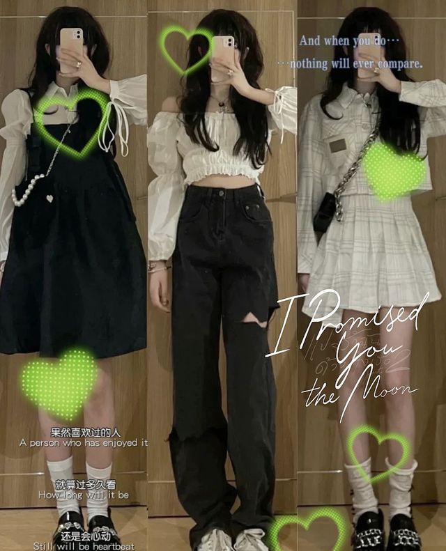 今日份穿搭,今天馨冉是一个酷Girl[女主穿的是中间那一身]