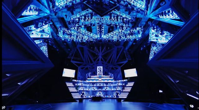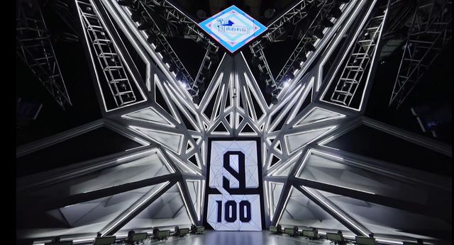 选手们跟着主持人来到舞台现场,选手们发出感叹,荧光色的舞台散发着五颜六色的光芒,最高的第一位就是王者和女王的位置,和平常不同的是第一位像荣耀的象征,伴随着灯光的弧形变得更高更闪亮,主持人对他们笑是因为聚集在青春有你的舞台,他(她)们都很幸运。