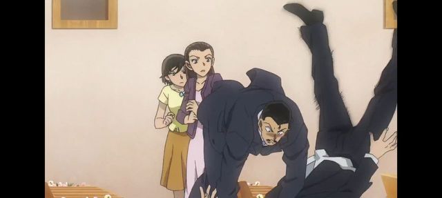 “闪开”一号‘歹徒’挥动着刀,砍向毛利小五郎,他砍,他躲,他难逃一个过肩摔,瞧瞧给毛利小五郎帅的