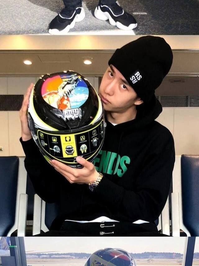 当时看图片他就觉得很好看这会见到了实物果然非常的酷,和他很搭,最最最重要的是,这是战哥送他的限量款头盔,花了好多好多钱特意送给他的,想象王一博就美得不行。