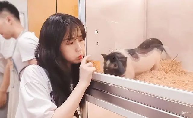 员工看看那位正在逗小猪玩的漂亮小姐姐,又看看自家这位老板满眼都是她,嘴角还扬着,八卦魂燃烧着,想着老板人又好还不克扣她们,就问道.