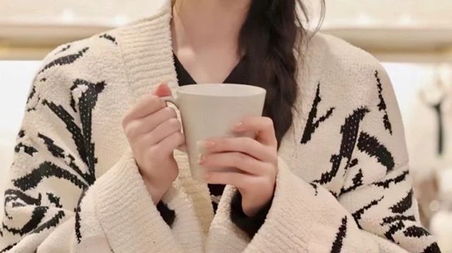 纪椿双手捧着杯子,时不时小口喝一口,垂落在肩的辫子,毛织外套衬得她更加温柔了.