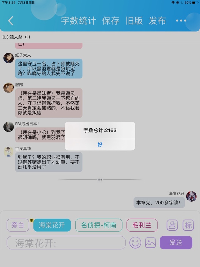 海棠花开来玩狼人杀吗?