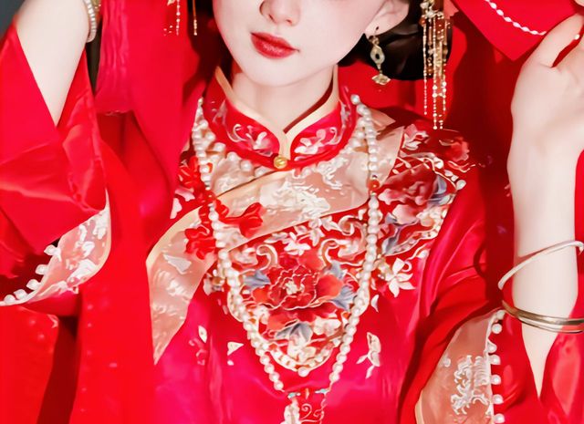 凤冠霞帔,红唇皓齿,一颦一笑,风姿绰约。