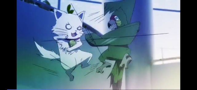 鹦鹉看到自己的闪电击中了NEKO后,正在得意的哈哈大笑,却不想NEKO变成猫的形态,从上空给了它一拳