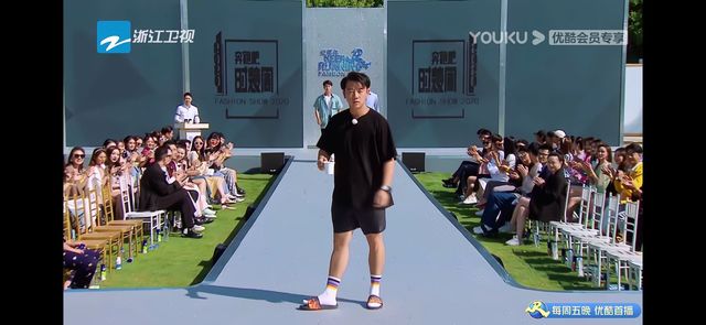 【姚译添】:(笑了笑),我们从这里看男生们依次登台,给他们的走秀的过程来进行打分