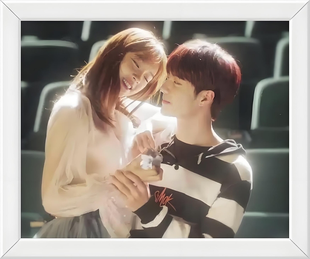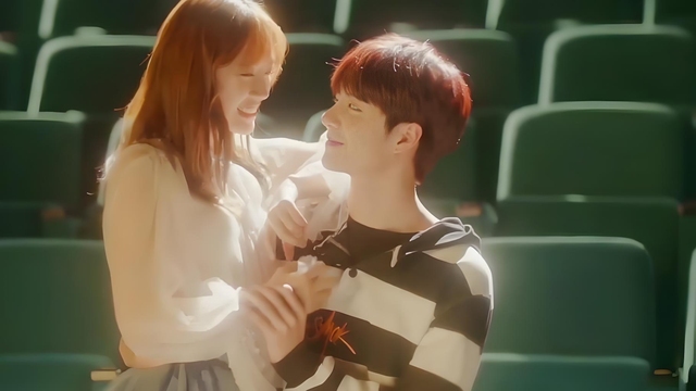阳光透过斑驳的树叶洒落在长椅上,为这对年轻人勾勒出一幅温馨的画面。男孩穿着浅色衬衫和牛仔裤,慵懒地靠在椅背上,目光温柔地注视着身边的女孩。女孩身着一件粉色外套,搭配深蓝色牛仔裤,手中轻轻抱着一把吉他。她偶尔拨动琴弦,发出几声清脆的音符,在空气中轻轻回荡。两人之间的距离很近,仿佛整个世界都只剩下彼此。女孩微微侧头与男孩轻声交谈,嘴角挂着若有若无的笑意。远处的树木随风摇曳,为这个宁静的午后增添了几分诗意。他们时而低声细语,时而相视一笑,每一个细微的动作都流露出彼此间的默契与亲密。在这个被绿意环绕的角落里,时间仿佛也放慢了脚步,让这一瞬间变得格外美好而永恒。