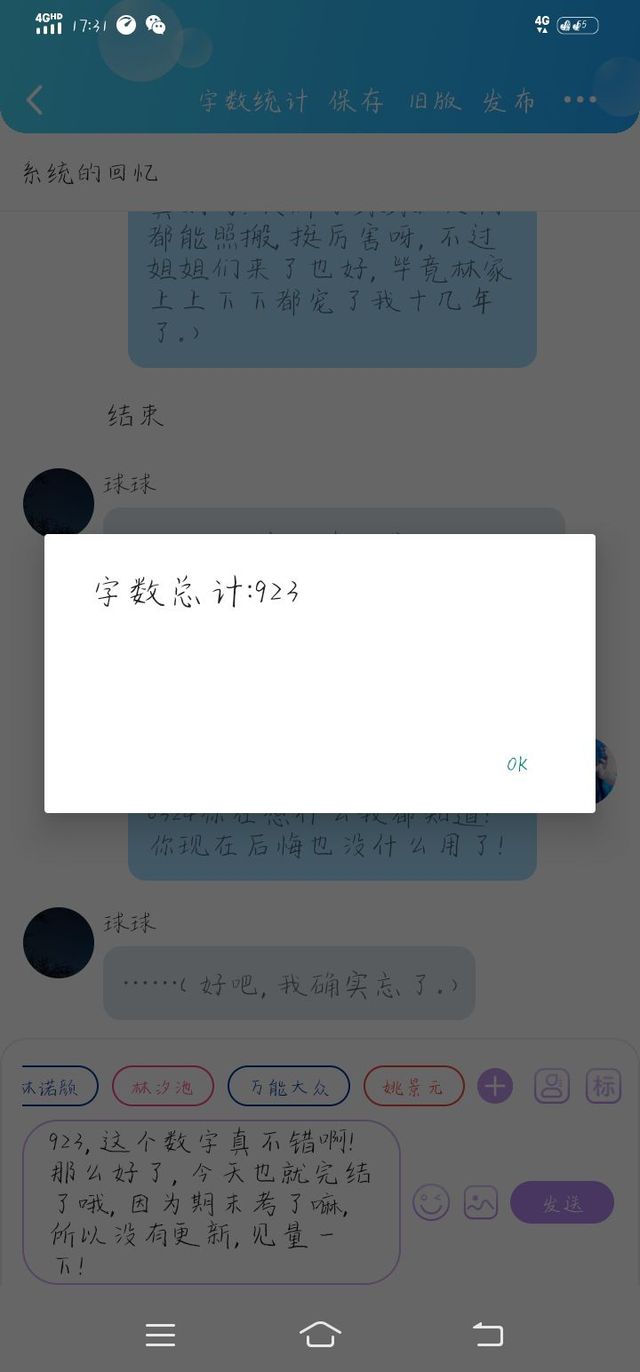 苏祺923,这个数字真不错啊!那么好了,今天也就完结了哦,因为期末考了嘛,所以没有更新,见量一下!