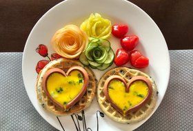 “嗯……那我要吃你做的爱心早餐,就你之前给我做的那种 。”