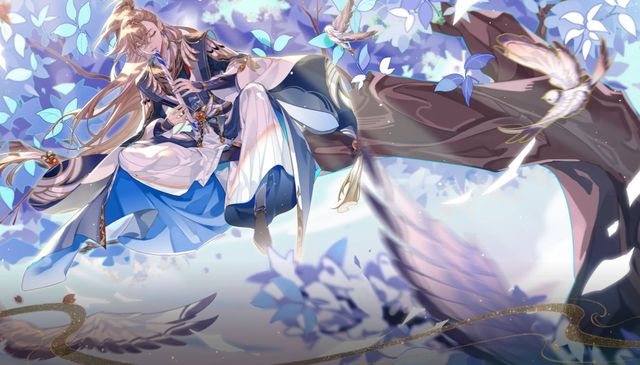 远处的飞鸟仿佛被少年的箫音吸引,驻足在他周围,枝上、肩头,点缀其间。