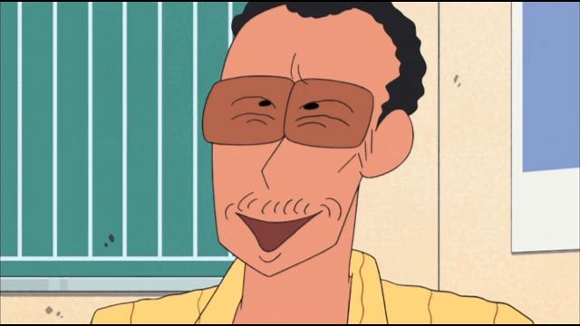 野原新之助对哦!有着恐怖的面庞和惊人的气场—以吓哭好多幼稚园小朋友著名的园长老大!
