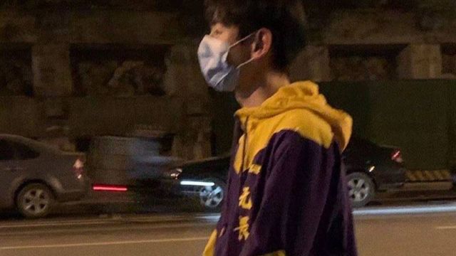 无畏应该刚训练完毕身上还穿着队服,在南京的夜晚一个人等在门外。即使少年戴着口罩也藏不住眼里的爱意。