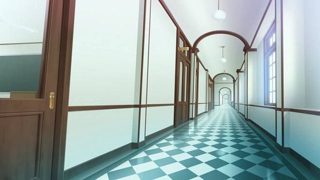 走廊中,人群疏疏散散,少女的背影在人群中穿梭,她欢呼雀跃,脸上洋溢着笑意。
