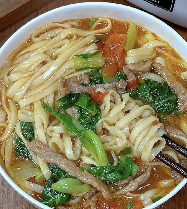 刚说完边伯贤就端着一碗热气腾腾的面过来,看着好有食欲