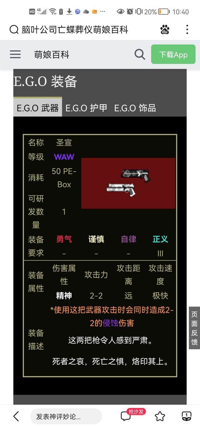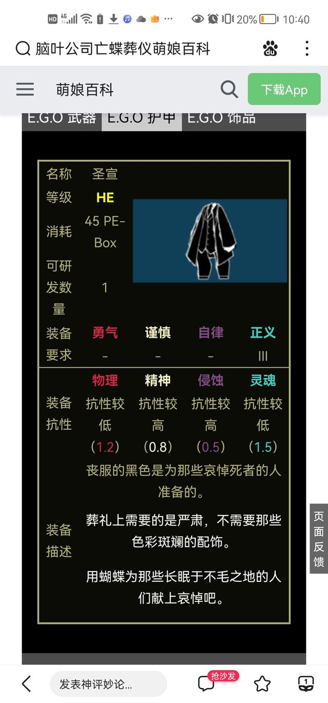 寒凌那给我调出亡蝶葬仪的E.G.O.面板。