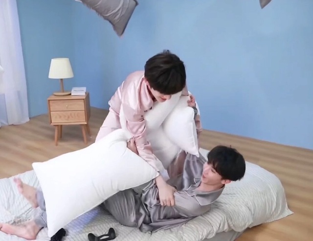马嘉祺抓起一个枕头直接砸向丁程鑫的脸,丁程鑫没站稳,倒了下去