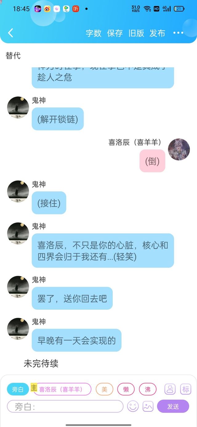 鬼神喜洛辰,我的记忆恢复了很多,想起来我是谁了,多谢这几天的照顾,也谢谢你与我夜夜切磋让我实力大增,我不得不回去我界了,多日照顾没齿难的忘来日有机会必报此谢,茶很好喝,有机会必回来品尝一二