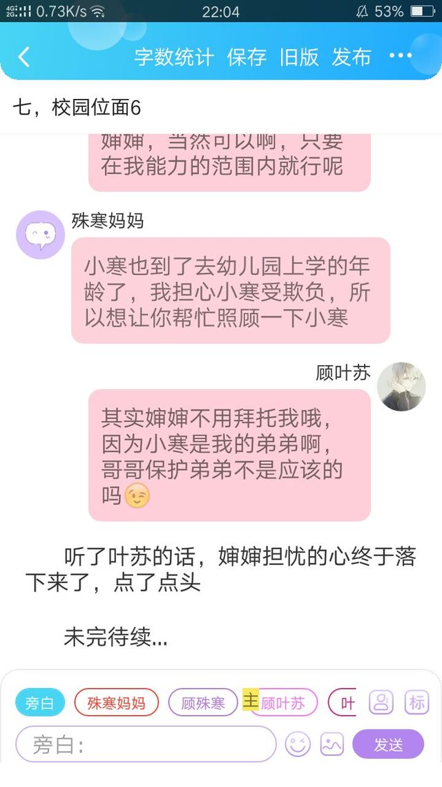 叶苏的妈妈小宝贝,等到周一的时候,殊寒就要去你所在的学校去喽,要照顾好自己和殊寒,不要受委屈哦,受委屈的话叫妈妈,妈妈到时候帮你们出气