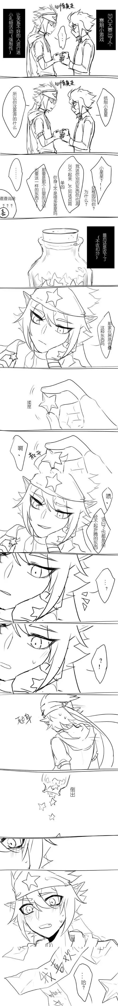 揉捏着小星星的雷狮吐槽同时着安迷修的同时把小星星的纸条给揉散开了。