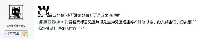 小野寺无法向高野表达内心的害怕,只得一直低着头,选择性地屏蔽掉周围那一声声惊秫的音乐,间或伴有几声凄厉的鬼叫,一步步艰难地向前迈进着。小野寺紧皱着眉头,半闭着双眼,他几乎不敢抬头,或是睁大眼睛去看周围的一切。高野几次过来牵起小野寺的手,却都被小野寺傲娇地甩开,明明心里已经害怕得不得了,却仍要故作镇定地摆出一副天不怕地不怕的样子来拒绝高野的保护,实则是不希望被高野那家伙给小看了自己。