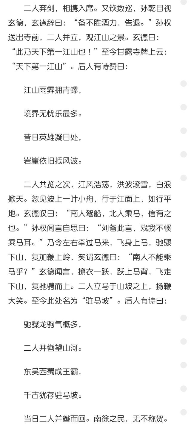 “是主公告诉我的,他说,这是’天下第一江山’”望着周瑜诧异地神情,诸葛亮轻轻摇着羽扇解释道,“主公将在江东的一切都告诉了我,尤其是对甘露寺前的江山之景赞不绝口,表示若有机会能再来江东一次,定会旧地重游。”