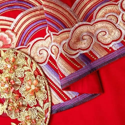 一件红色带有刺绣的布料,看成色应该是古西域留下来的,有些年头了。