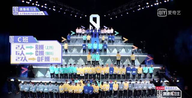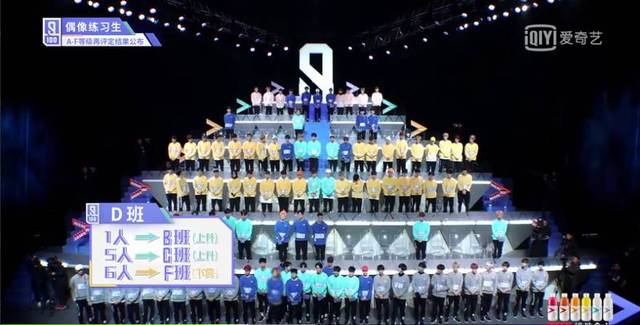 王嘉尔现在来宣布D班的成绩接下来D班将会有6个升级的也有1位练习生直接跳级进入班