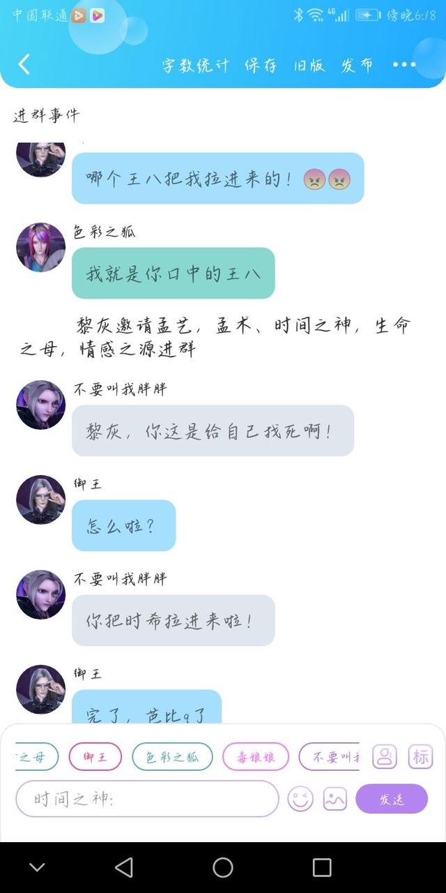 色彩之狐邀请不要叫我胖胖、我恨时灵姐妹、御王进群