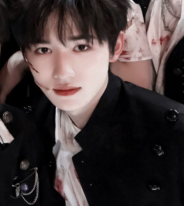 与刘耀文不同,少年面容白皙,明明是峰挺的剑眉偏偏配了一双圆顿的杏眸。鼻梁高挺,红唇齿白,脸颊上带血的擦痕和他乖巧的顺毛莫名有些违和。