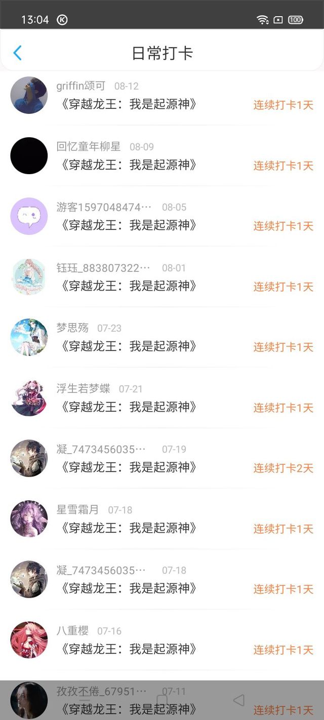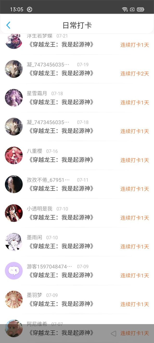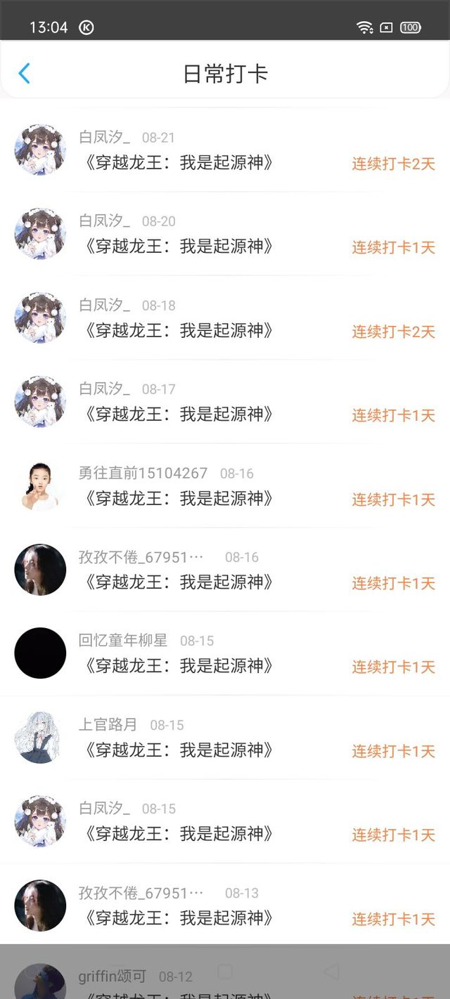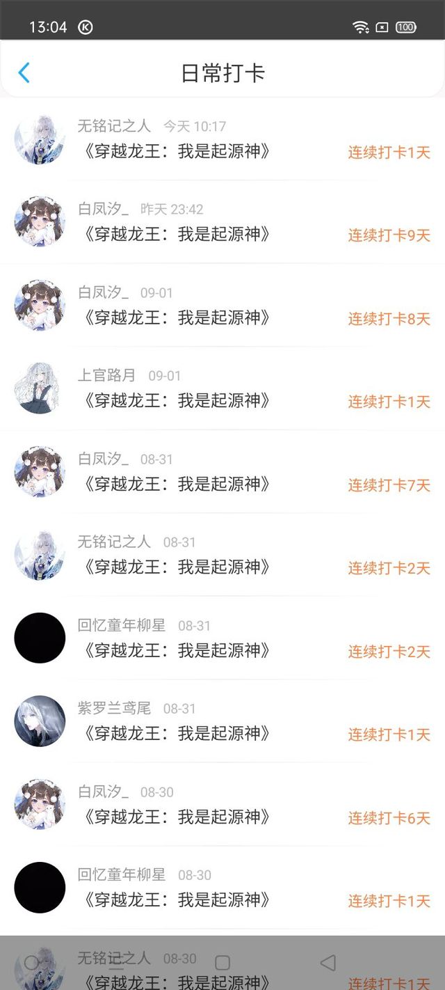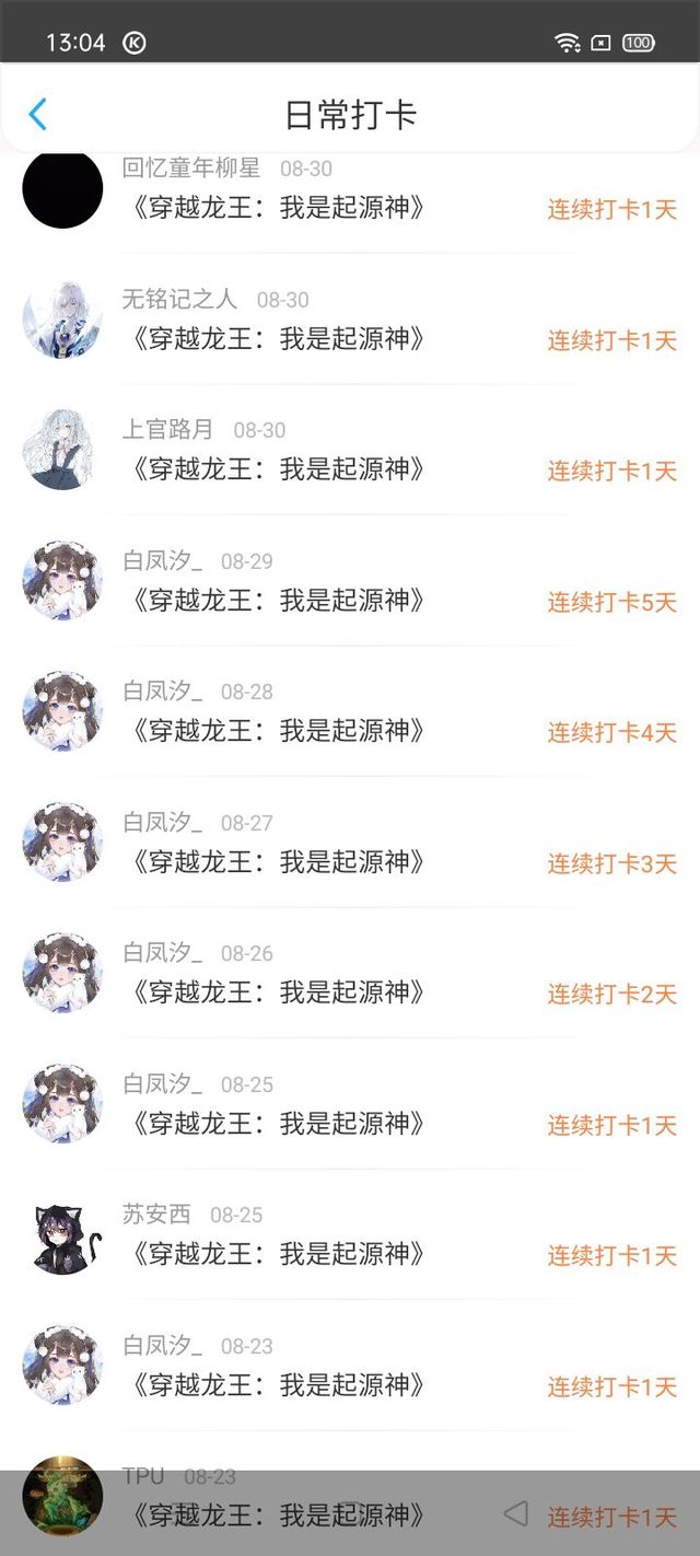 谢谢你们的打卡,由其是白凤汐打卡九天