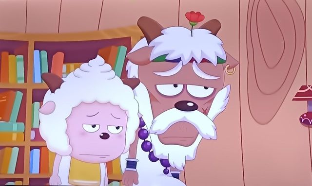 族长慢慢地走到懒羊羊和刀羊面前