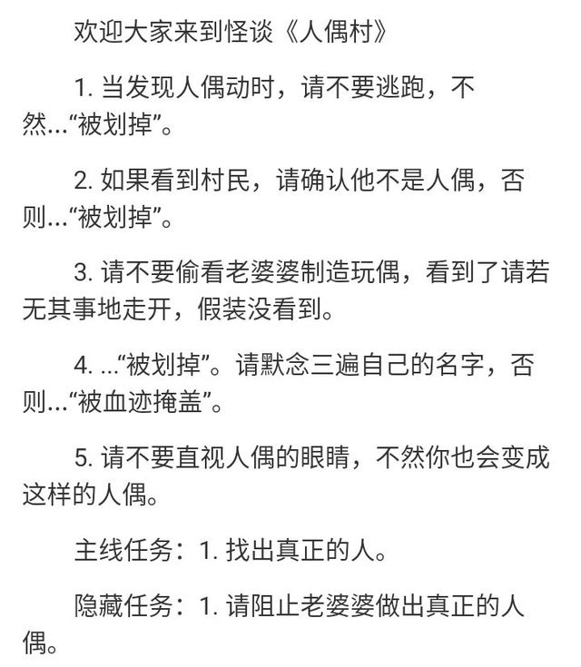 跑龙套一定要遵守这里的规则,这边的人几乎都是人偶,还有,要小心那个老太太,这是我给你们的第一个忠告。