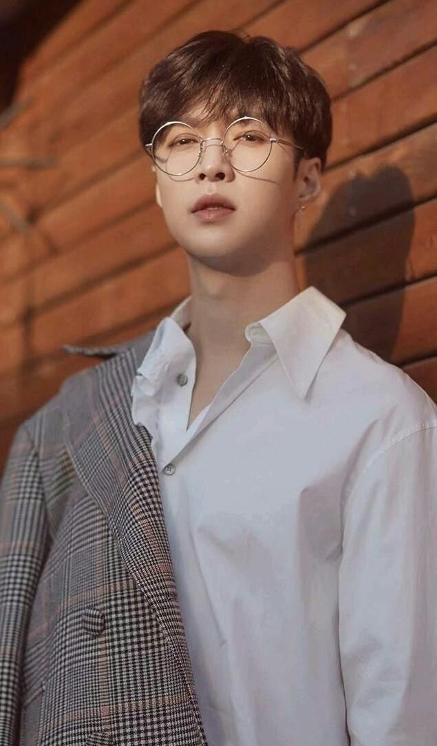 张艺兴一身白衬衫,加金丝眼镜,站着,温柔且清冷的感觉充斥着。