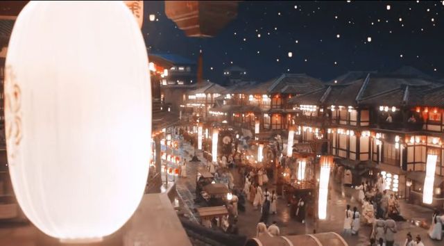 街道两旁挂满各式各样的灯笼,令人目不暇接。粼粼而来的马车穿梭于集市间,摩肩接踵,人声鼎沸。