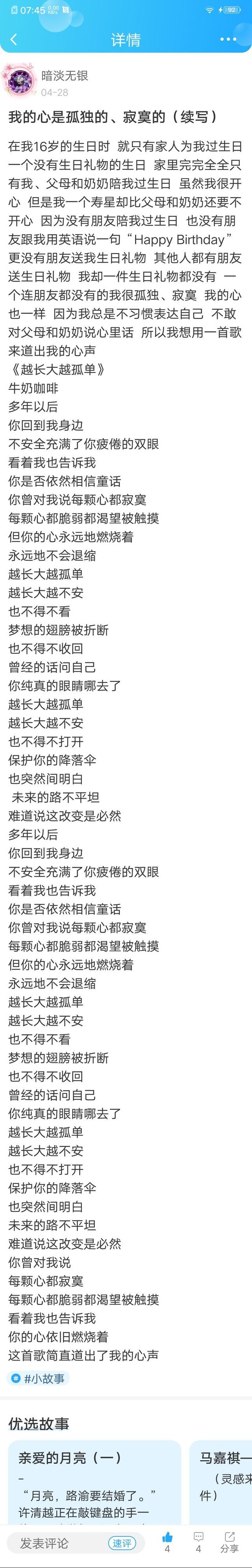 作者大大(思思)我身边没有朋友 我已经习惯自己一个人了