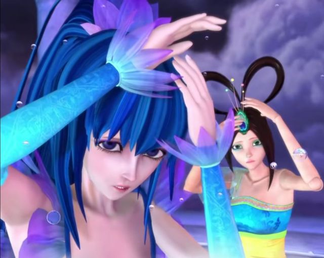 这个时候那个被孔雀叫做主人的绑着深色蓝发高马尾的女孩站了出来:“纯洁如冰雪!将水冻成冰,粉碎!”