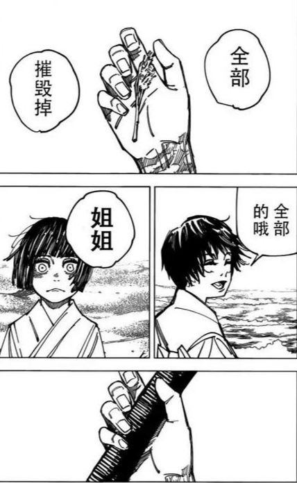 只可惜眼前的妹妹却永远都无法回应了,一旁虎视眈眈的咒灵们也随着真依咒力的消失开始慢慢走向它们眼中的‘食物’。而刚刚走出门外的禅院扇突然感受到从房间内爆发出一股无比强横的气息