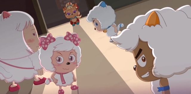 小羊们正在野餐时,懒羊羊突然发现了两个人,扶回了家。