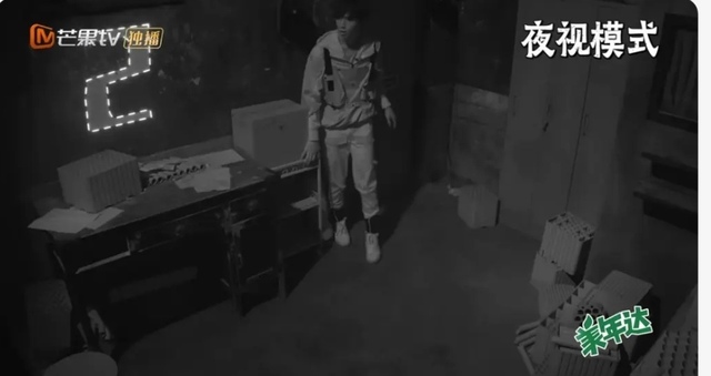 在白敬亭的提示下在柜子里找到了手电筒,打开手机一照,却猛然发现柜子上有一个空心人,他之前一直不知道。就这样刘耀文和 NPC 尴尬对视了,心里慌的一批。
