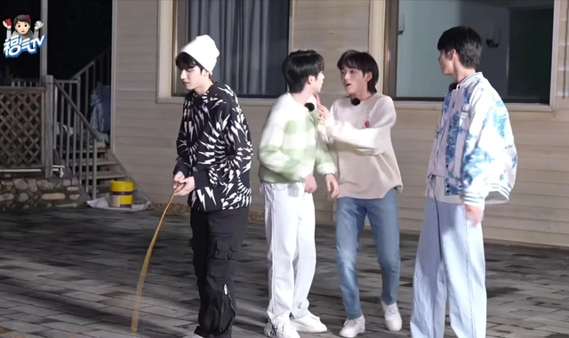 丁程鑫专业的教学了怎么样摇大绳,随后宋亚轩丁程鑫摇绳,其他人跳。