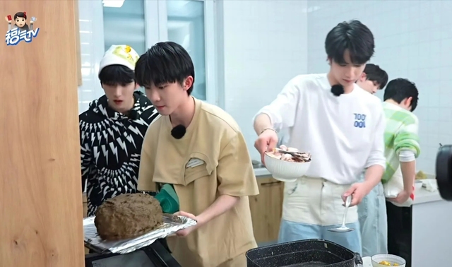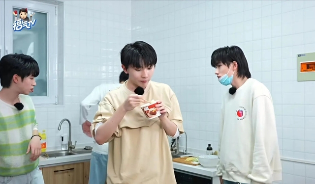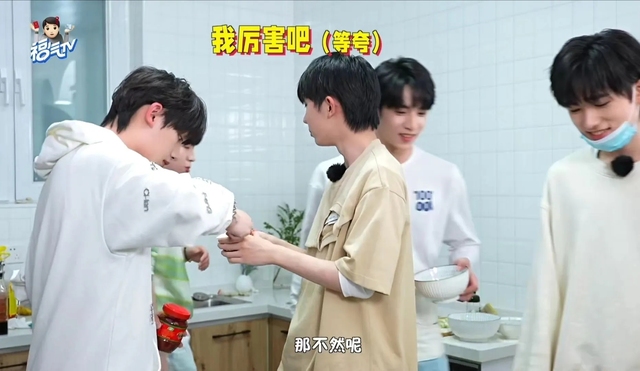 贺峻霖率先拿起来豆瓣酱,大有施展一番的样子,接着转身。