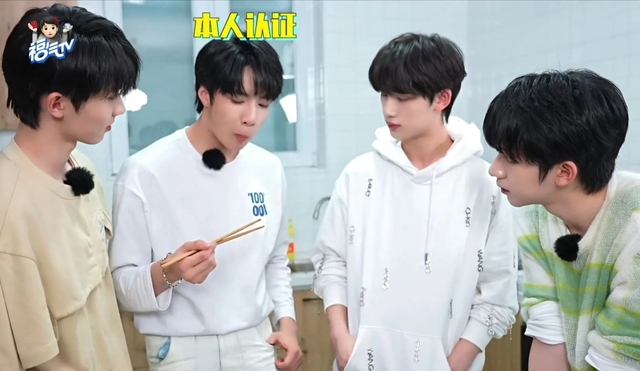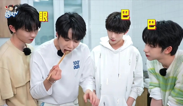 丁程鑫贺峻霖都尝一下,给予了么儿好评。