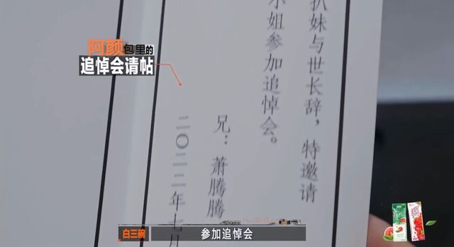 白三碗“「家妹萧扒妹与世长辞,特邀请张小姐参加追悼会。兄:萧腾腾,2022年7月18日。」”