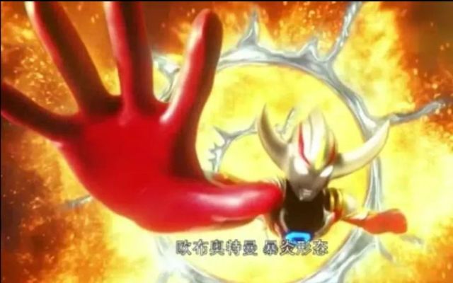 随后,大家看见欧布变了一个样子,不仅全身被火焰覆盖就连颜色也变成了红色,头上更是顶着两个大角